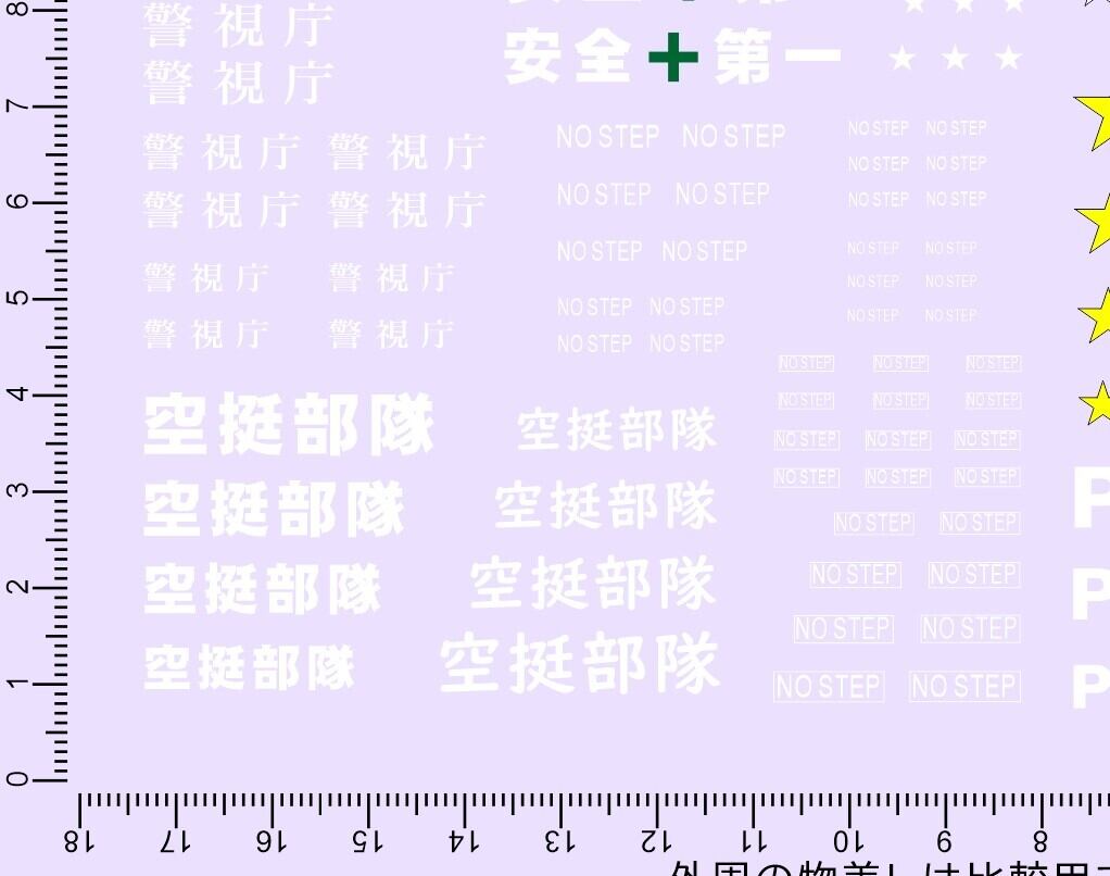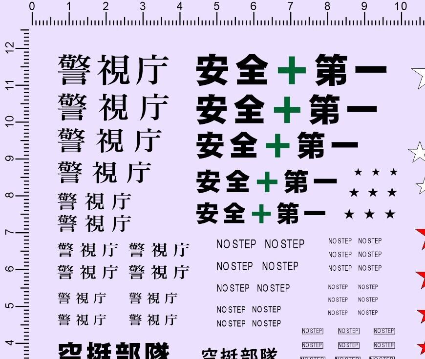 ※自作デカールは旧式の熱転写式プリンターにより印刷しなければならず、極小細部の文字、図形など(目視が難しいほどの極細部)は、少々形が崩れる部位も御座います。