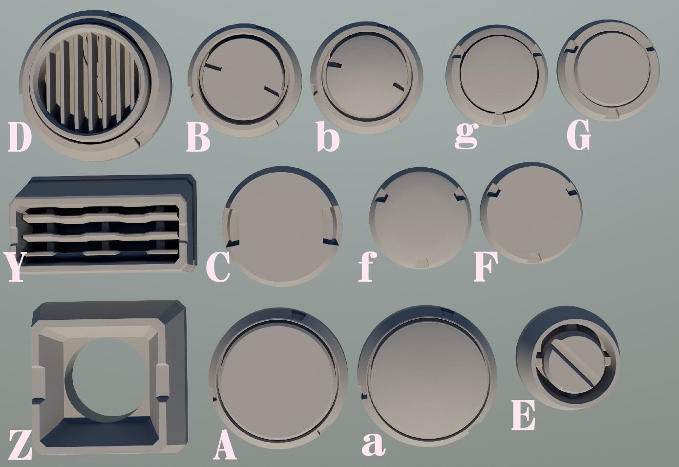 メカパーツ 丸型 (b)タイプ 6,3mm径 ☆4個で1組 3Dプリンタ出力 改造パーツ