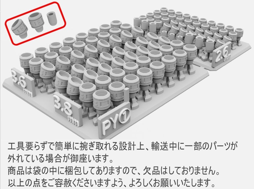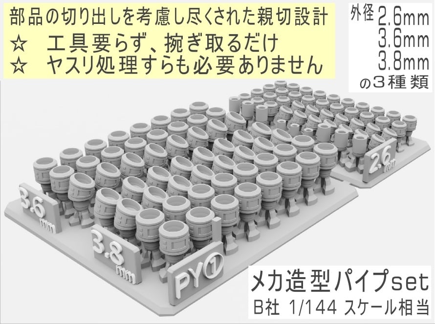 メカパイプ(ホース)セット PY① 3Dプリンタ出力 改造パーツ