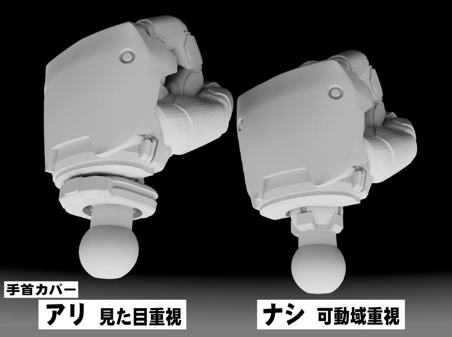 手首を隠すことが出来る ”飾りパーツ”(3個) 付属。